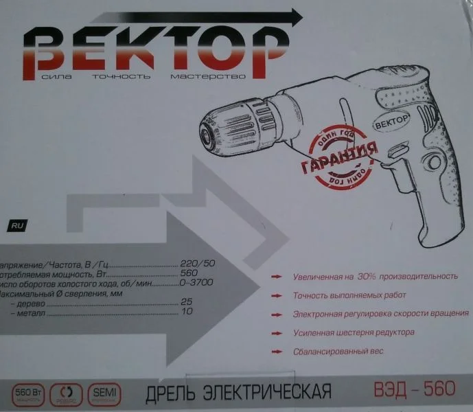 Дрель-шуруповерт электрическая ВЕКТОР ВЭДШ 560 предназначена для сверления отверстий в металле и дереве, а также использование дрели, как шуруповерта при выполнении ремонтных, монтажных и других работ.