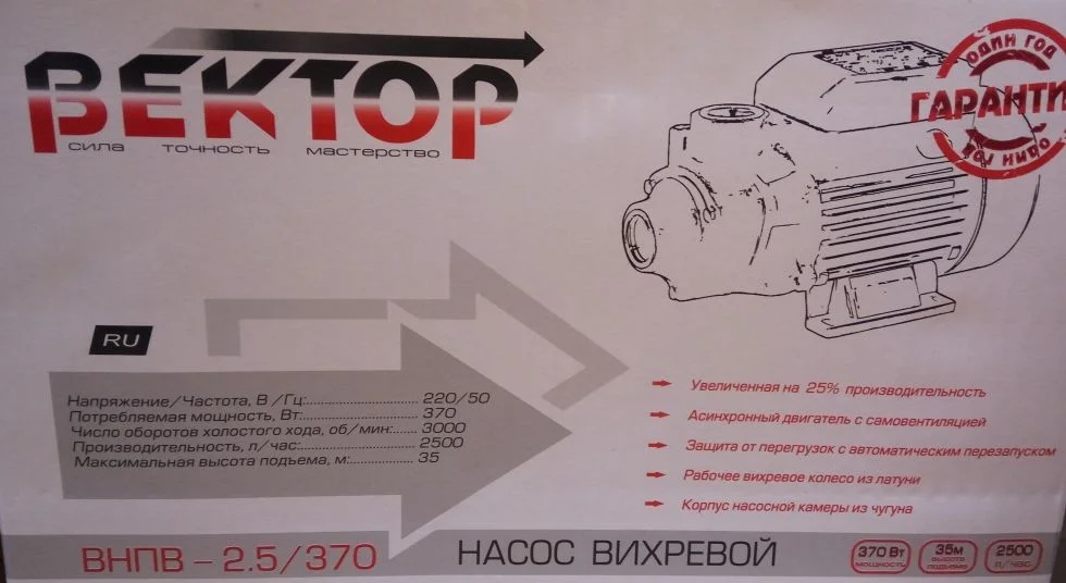Насос вихревой Вектор ВНПВ - 2.5/370