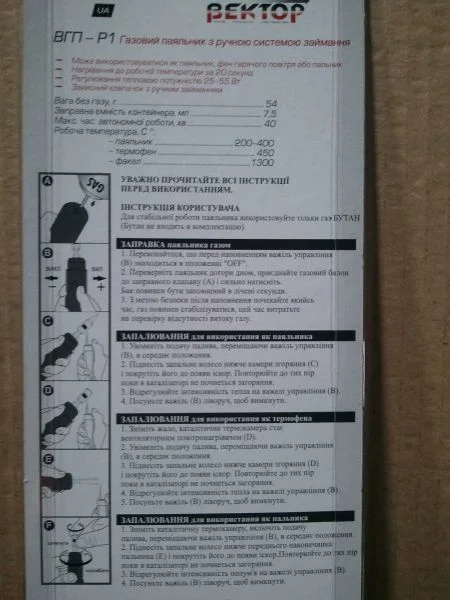 - Топливо - бутан (обычный газ в баллончиказ для заправки зажтгалок)