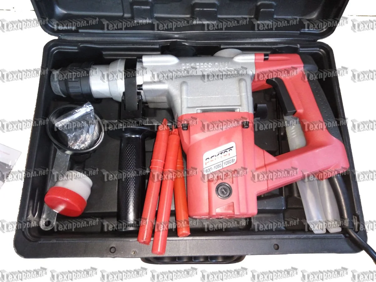 Перфоратор ВЕКТОР ВЭП 1050 - предназначен для сверления отверстий в кирпиче, бетоне, камне и других твердых материалах, а также проделывать проемы, сбивать керамическую плитку или штробить кабельные каналы.