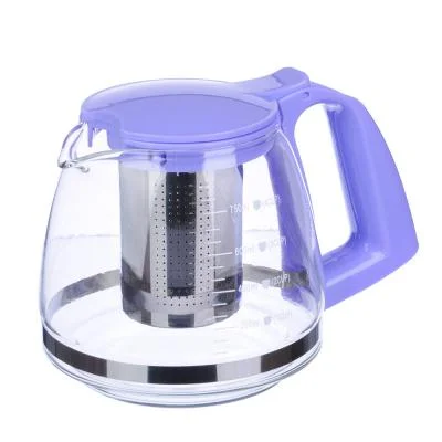 Заварочный чайник объемом 750мл из жаропрочного стекла, с пластиковой ручкой и крышкой, с ситечком из нержавеющей стали, подходит для заваривания чая и трав.
