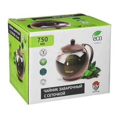 Заварочный чайник объемом 750мл из стекла в пластиковом корпусе, с ситечком из нержавеющей стали, подходит для заваривания чая и трав.