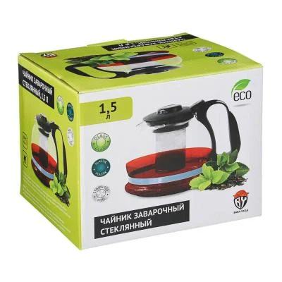 Заварочный чайник объемом 1500мл из жаропрочного стекла, с сеточкой из нержавеющей стали подходит для заваривания чая и трав.