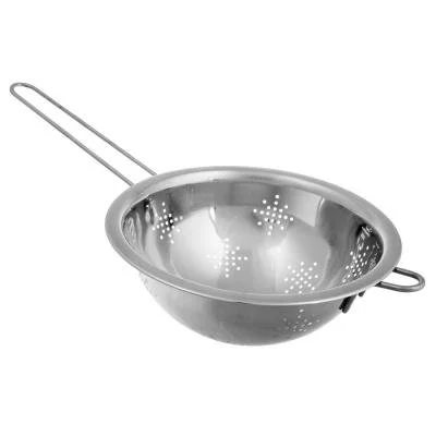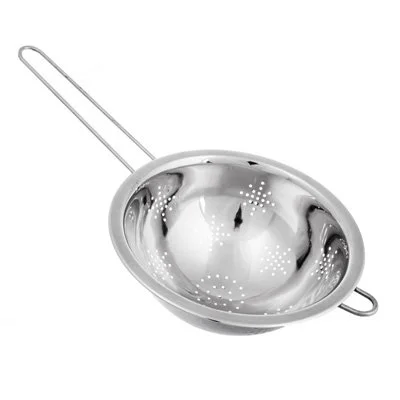 Дуршлаг из нержавеющей стали с ручкой незаменимый помощник во время промывания риса, грибов, ягод, мелких фруктов. Вы сможете легко отцедить творожную сыворотку, подготовить консервированную вишню к приготовлению пирогов, слить воду с макарон и картофеля. Гигиенический материал не выделяет токсических веществ при контакте с горячими продуктами. Не придает им металлический привкус. Исключает размножение микроорганизмов.