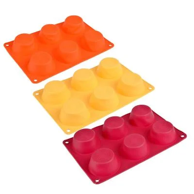 Форма для выпечки размером 24,5х16,5х3 см из силикона, разделенная на 6 круглых ячеек с ровным гладким дном, предназначена для выпечки изделий из теста в духовых шкафах.