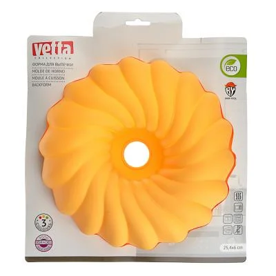 Форма для выпечки круглая размером 25,4х6 см из силикона с отверстием в центре и рельефным дном, предназначена для выпечки изделий из теста в духовых шкафах.