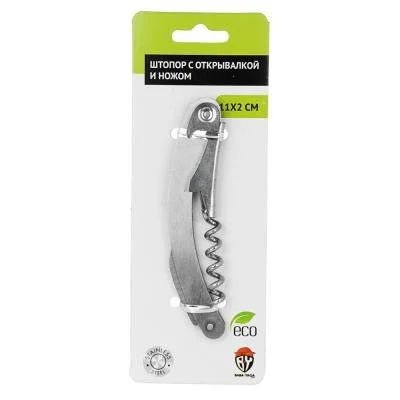 Изделие 3 в 1: служит в качестве штопора, открывалки консервных банок и ножа. Простой и универсальный аксессуар. Больше не нужно применять силу для того, чтобы открыть бутылку. С данным штопором вы без труда сможете достать пробку из горлышка. Штопор сделан из металла и прослужит вам долгие годы. С его помощью можно открыть емкости разных типов.
