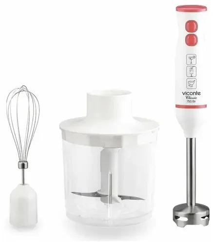 Блендер Viconte VC-4428 позволяет легко смешивать, измельчать и взбивать продукты, добиваясь их однородности и нужной консистенции. Все необходимые аксессуары уже в комплекте: венчик для взбивания, металлическая насадка блендер, измельчитель с прозрачной чашей. Съемная насадка-блендер и ее лезвия изготовлены из высококачественной пищевой нержавеющей стали, что обеспечивает простейший уход за прибором и его безотказную работу. Съемная насадка-венчик подходит для смешивания жидкостей, взбивания яиц и крема. Измельчитель с лезвиями из нержавеющей стали и прозрачной чашей подходит для измельчения, взбивания, смешивания, приготовления большинства продуктов, в том числе фарша.