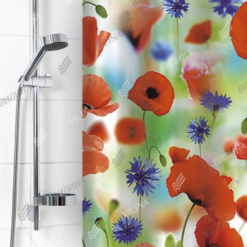 Шторки, карнизы, полки для ванной и душа » VILINA Занавес для ванной комнаты 180 x 180 см Маки 6666 (1576-1)