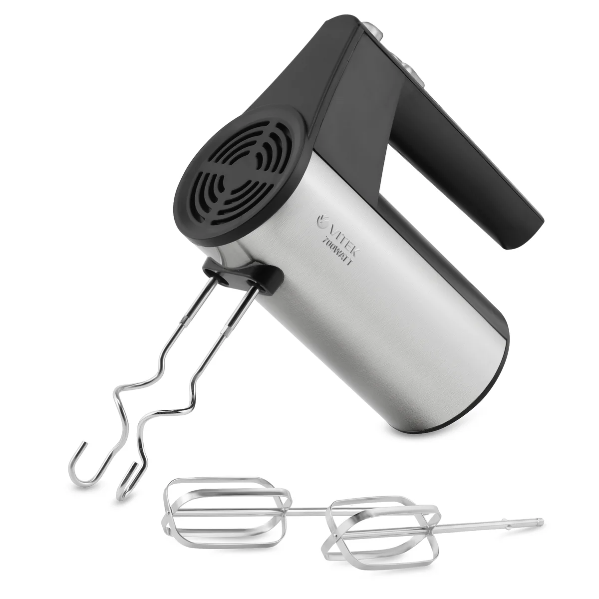 Идеально взбить сливки для крема или вымесить тесто поможет ручной миксер VITEK VT-1428 с мощностью 700 Вт. Внимательно следуйте рецепту и выбирайте необходимую скорость — одну из пяти, предусмотренных в приборе. Помимо этого, в миксере есть и режим TURBO, который обеспечивает безупречный результат в рекордно короткие сроки. В комплект к миксеру входят два вида насадок — венчики для взбивания и крюки для теста: они отсоединяются от корпуса легким нажатием специальной кнопки.