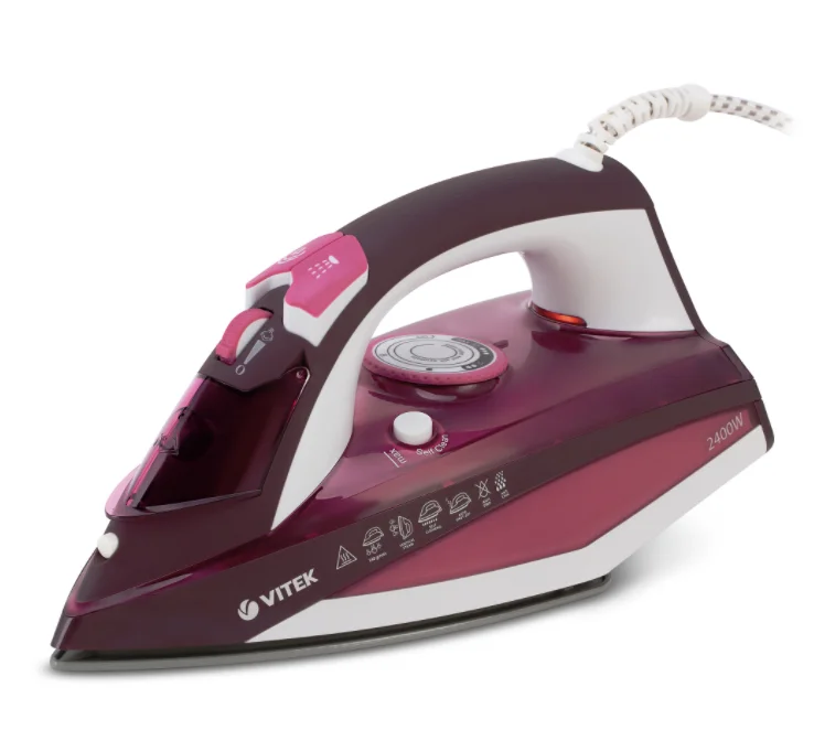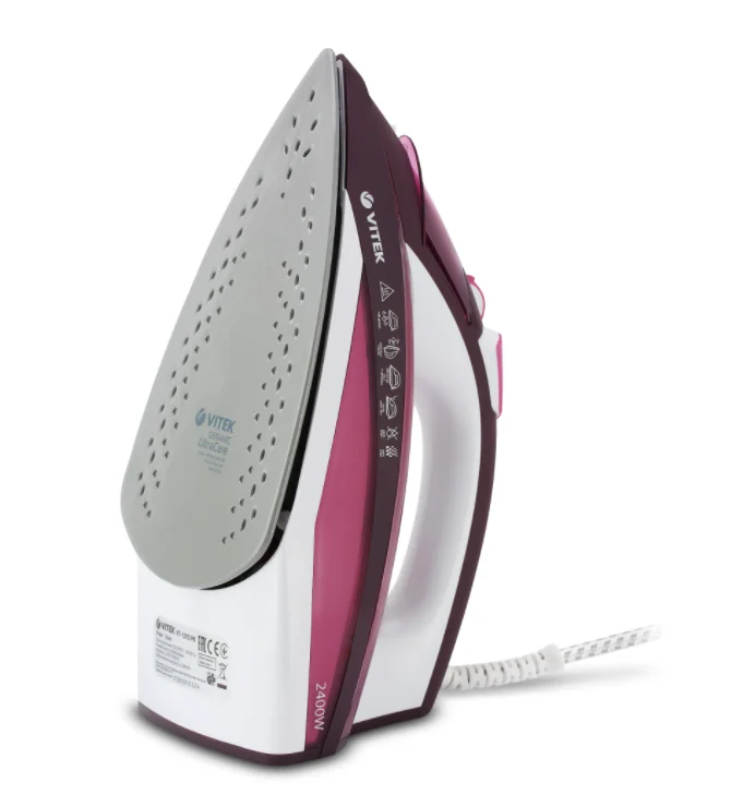 Стильный современный утюг VITEK VT-1215 с максимальной мощностью 2400 Вт позволит вам быстро и качественно отгладить платье, рубашку или костюм. Подошва прибора имеет уникальное керамическое покрытие UniCera, устойчивое к сколам и царапинам, которое обеспечивает сверхлегкое скольжение по ткани. Вы можете выбрать сухое глажение, а также воспользоваться функцией разбрызгивания или удобной системой вертикального отпаривания (паровой удар — до 140 г/мин). Объем резервуара для воды — 320 мл. Утюг абсолютно безопасен в эксплуатации, так как отключается автоматически, если оставить его без движения. Наличие функции «антикапля», системы самоочистки и встроенной защиты от накипи гарантирует особый комфорт в использовании устройства. Купить утюг VITEK VT-1215 можно не только для себя, но и в подарок близким людям: они по достоинству оценят и внешний вид прибора, и его рабочие качества.
