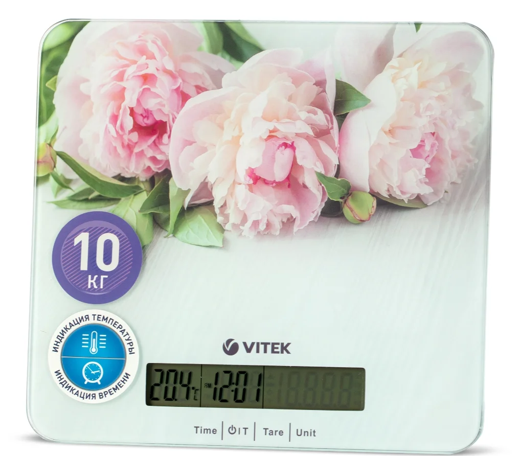 Без хороших кухонных весов — таких, как VITEK VT-2414 — хозяйке просто не обойтись! Они способны взвешивать продукты массой до 10 кг, причем, показания прибора обнуляются автоматически. Особого внимания заслуживает LCD дисплей размером 95х18 мм, на котором отражается не только вес, но и время. В приборе предусмотрена специальная система тарирования, поэтому вы можете взвешивать продукты в той или иной емкости: устройство учтет это и покажет массу продукта в чистом виде. Что особенно приятно, весы отключаются автоматически.