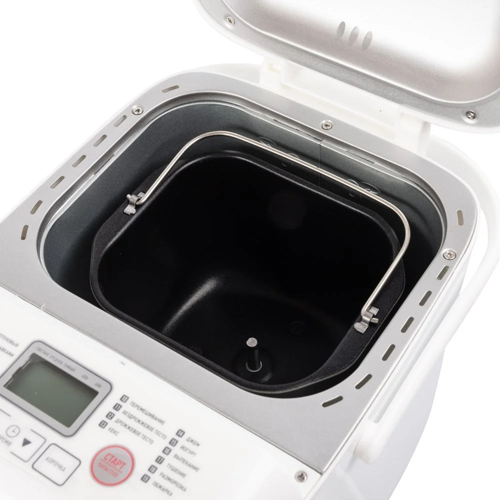 - 19 программ приготовления: Классический, Французский, Цельнозерновой, Бородинский, Быстрый, Сдоба, Безглютеновый, Хлеб с добавками, Десерт, Перемешивание, Бездрожжевое тесто, Дрожжевое тесто, Кекс, Джем, Йогурт, Выпекание, Тушение, Разморозка, Обжарка
