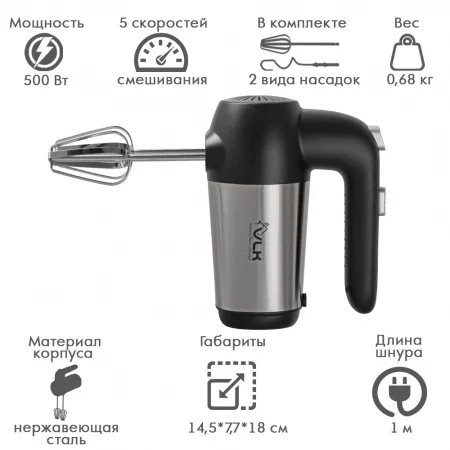Ручной миксер VLK Milano-6902 – это лучший выбор для домашних поваров, которые хотят готовить настоящие шедевры. Мощность 500 Вт гарантирует быстрое и эффективное смешивание продуктов. Миксер имеет 5 скоростей смешивания, что позволяет легко адаптироваться к любым ингредиентам и рецептам.