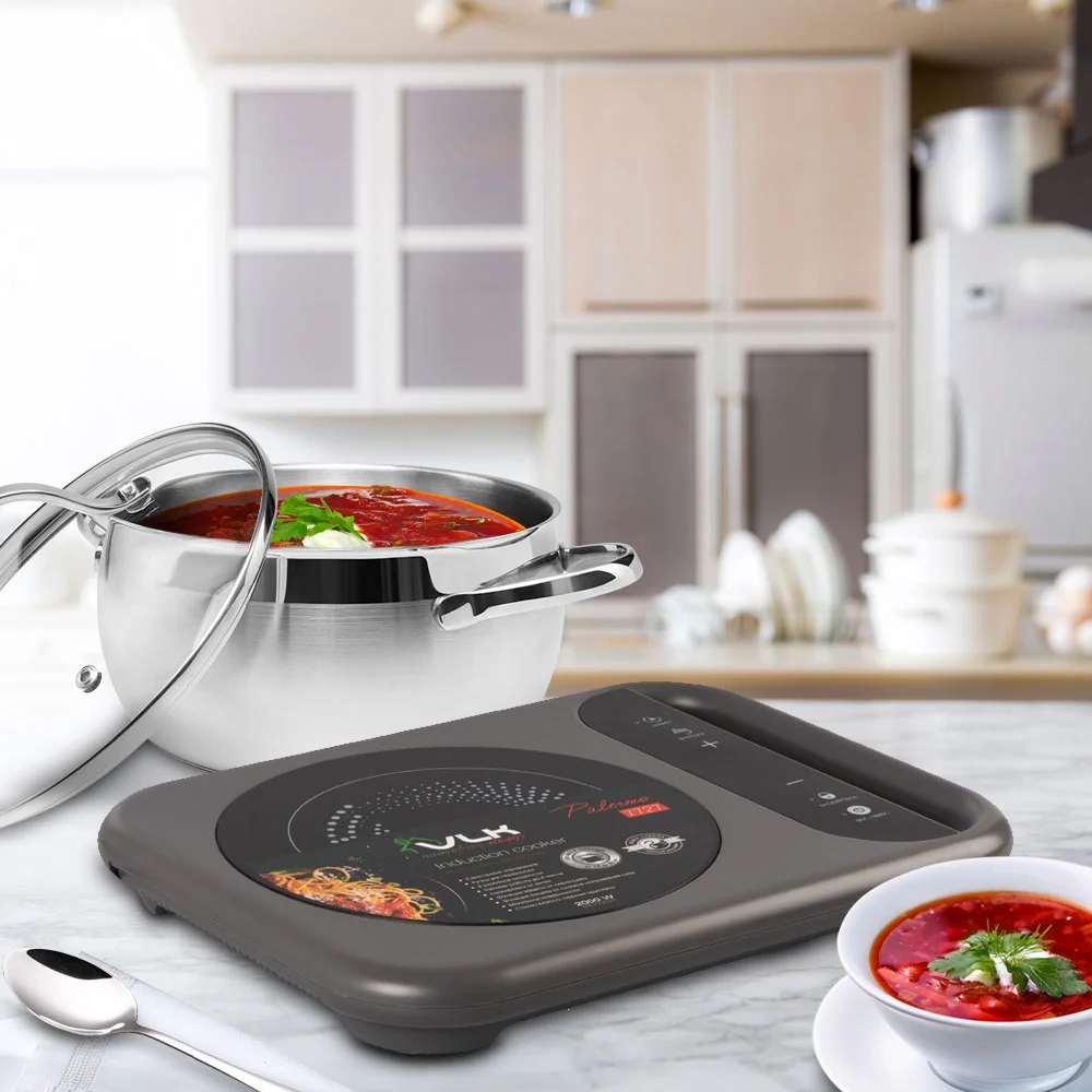 Познакомьтесь, настольная индукционная плита VLK Palermo 7727 – это отличный выбор для готовке пищи на даче, кемпинге или в обычной квартире. Она станет незаменимым спутником в туристических поездках, ведь благодаря небольшим габаритам и ручки для переноски, не займет много места в машине или ручной клади. Длина шнура 1,35 м позволит не думать о месте установки.