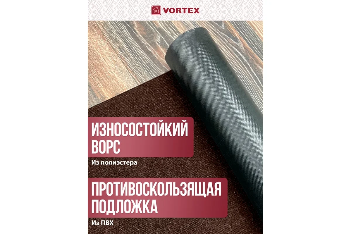 Коврик 90*120 см NICE КОРИЧНЕВЫЙ влаговпитывающий ребристый без борта, подложка пвх VORTEX 24393