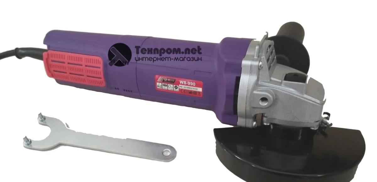 Угловая шлифовальная машина WS-990 предназначена для выполнения шлифовальных и отрезных работ по металлу и иным конструкционным и строительным материалам без подачи воды в бытовых условиях с помощью шлифовального/отрезного круга. Обработку хрупких материалов следует выполнять с особой осторожностью, принимая эффективные меры к удалению пыли из зоны резки.