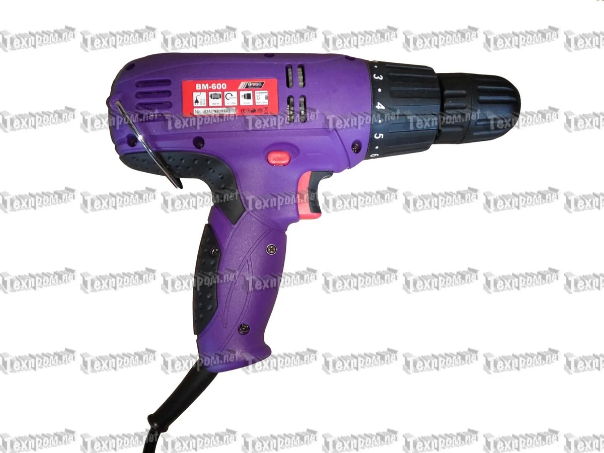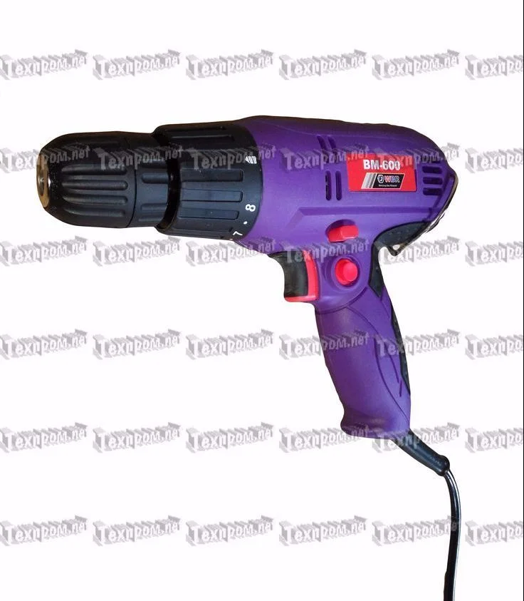 Электродрель-шуруповерт ВМ-600 является инструментом бытового назначения и предназначен для завинчивания и отвинчивания шурупов и винтов при монтажных, отделочных и строительных работах. Шуруповерт может применятся для сверления отверстий в различных конструкционных материалах (метале, дереве, пластмассе и т.п.). В шуруповерте предусмотрено плавное изменение числа оборотов шпинделя, а также изменение направления его вращения на противоположное (реверсирование).