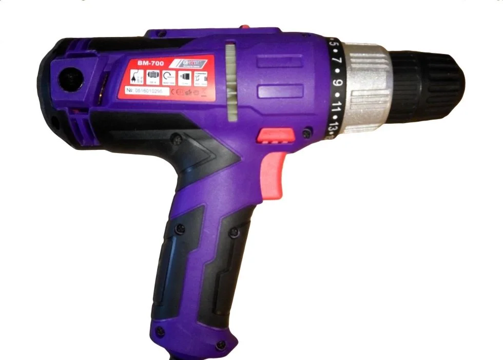 Электродрель-шуруповерт ВМ-700 является инструментом бытового назначения и предназначен для завинчивания и отвинчивания шурупов и винтов при монтажных, отделочных и строительных работах. Шуруповерт может применятся для сверления отверстий в различных конструкционных материалах (метале, дереве, пластмассе и т.п.). В шуруповерте предусмотрено плавное изменение числа оборотов шпинделя, а также изменение направления его вращения на противоположное (реверсирование).