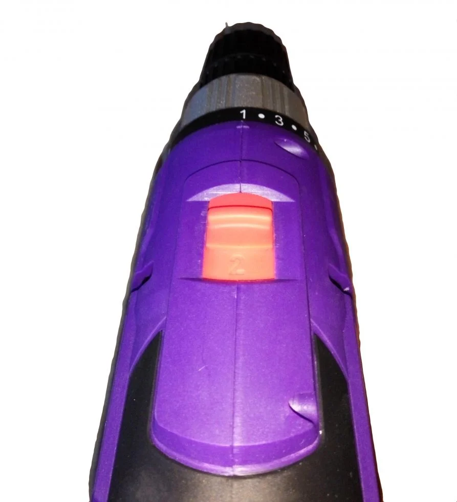 - Имеет две скорости с механическим переключением, для сверления используется большая скорость, для ввинчивания шурупов высокая мощность.