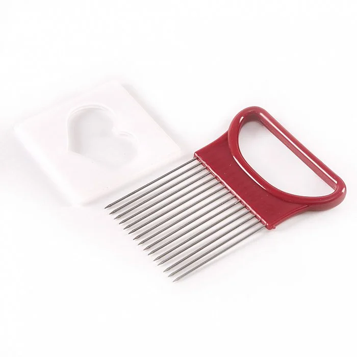 - Держатель для лука предназначен для нарезки овощей тончайшими ровными ломтиками, разрезая ножом между зубчиками