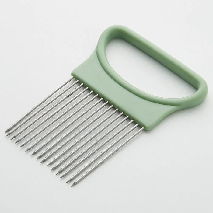 - Держатель для лука предназначен для нарезки овощей тончайшими ровными ломтиками, разрезая ножом между зубчиками