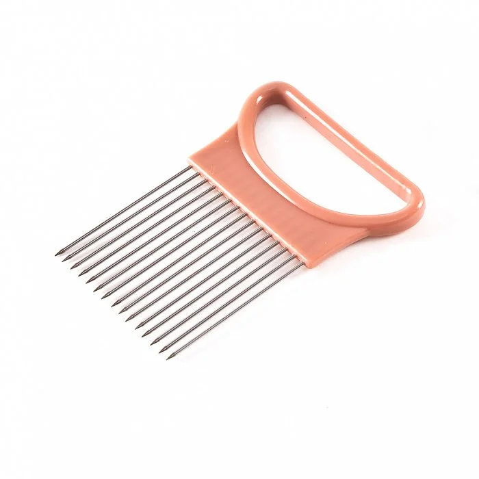 - Держатель для лука предназначен для нарезки овощей тончайшими ровными ломтиками, разрезая ножом между зубчиками