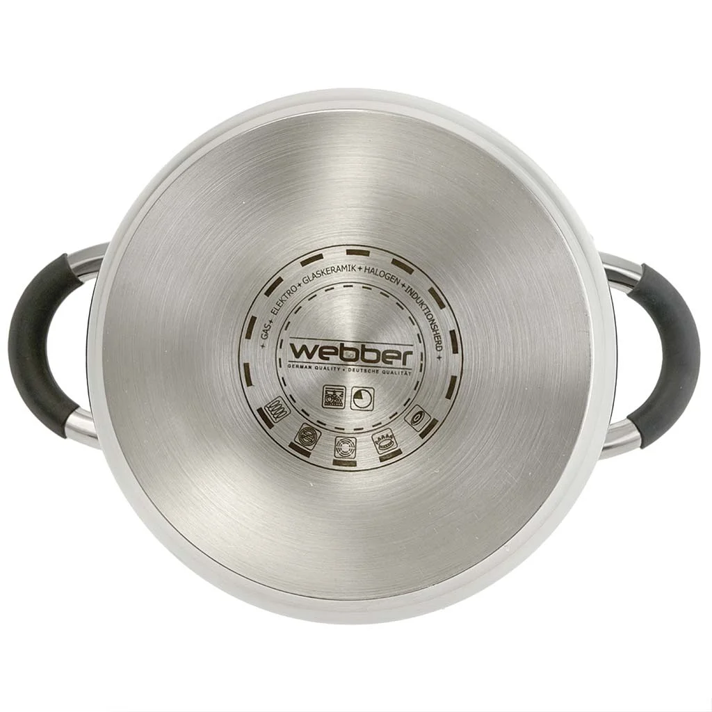 Кастрюля 4,7 л, 22 см, из нержавеющей стали со стеклянной крышкой с отверстиями для слива WEBBER BE-374/2 серия STYLE