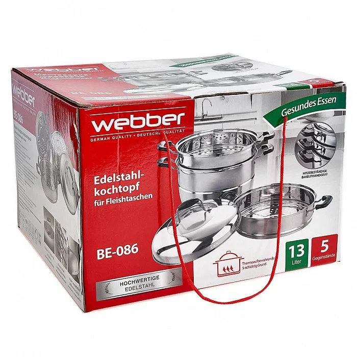 Мантоварка-пароварка из нержавеющей стали Ø30 см, 5 предметов WEBBER BE-086