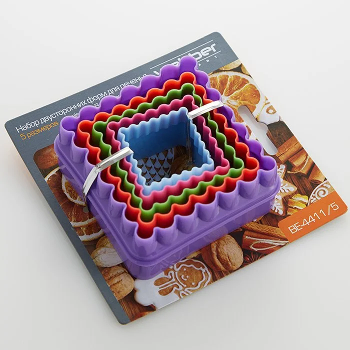 Набор двусторонних пластиковых форм для печенья 5 размеров Квадраты Webber BE-4411-5