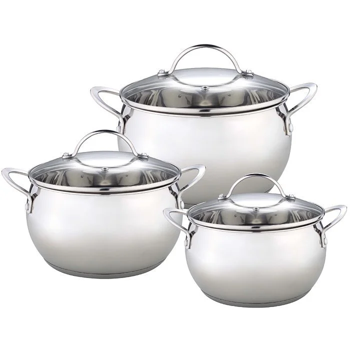 - Набор кастрюль из высококачественной нержавеющей стали со стеклянными крышками