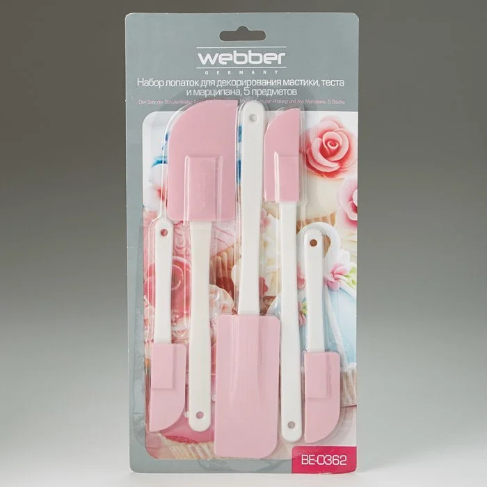 Набор лопаток для декорирования мастики, теста и марципана WEBBER BE 0362 белый с темно-розовым