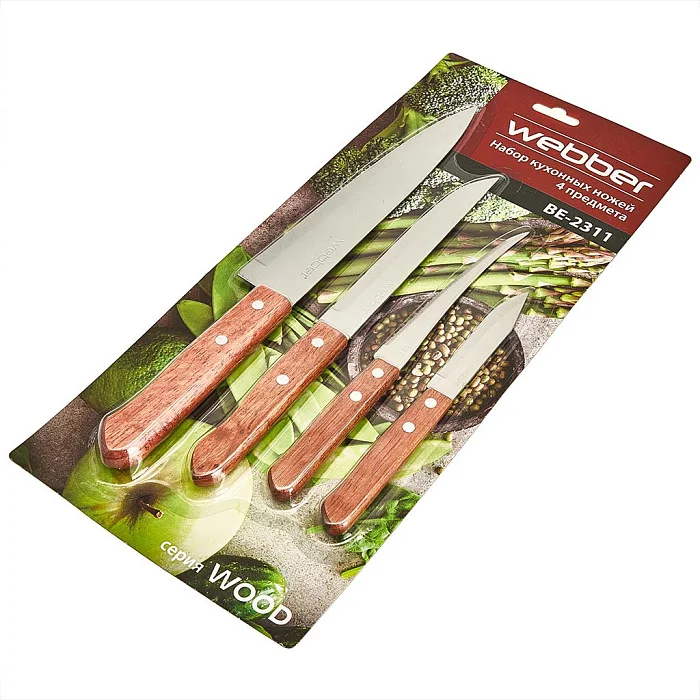 Набор ножей 4 предмета в блистере WEBBER ВЕ-2311 ручка дерево