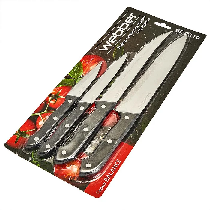 Набор ножей 4 предмета в блистере WEBBER ВЕ-2310 черная ручка с клепками