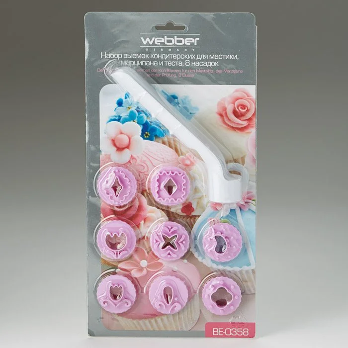 Набор выемок кондитерских для мастики, марципана и теста 8 насадок WEBBER BE-0358 белый с лавандовым