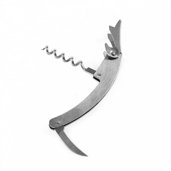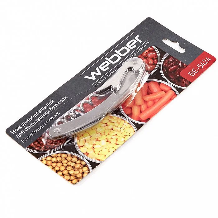 - Состоит из спирали штопора, открывалки для бутылок с крышками и встроенного ножика для срезания капсулы - оболочки из фольги на горлышке
