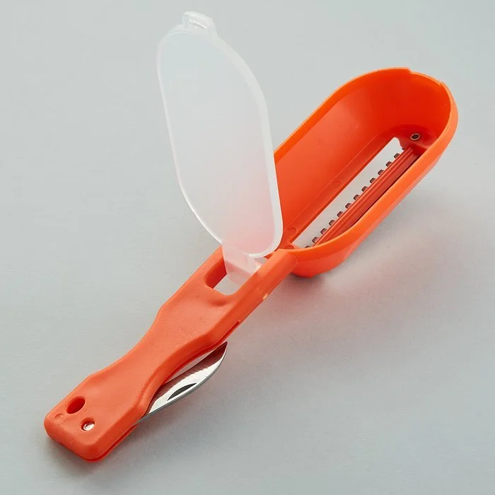 - Рыбочистка с контейнером позволяет быстро и аккуратно очистить рыбу от чешуи, не запачкав при этом всю кухню: все чешуйки скапливаются в специальном пластиковом контейнере