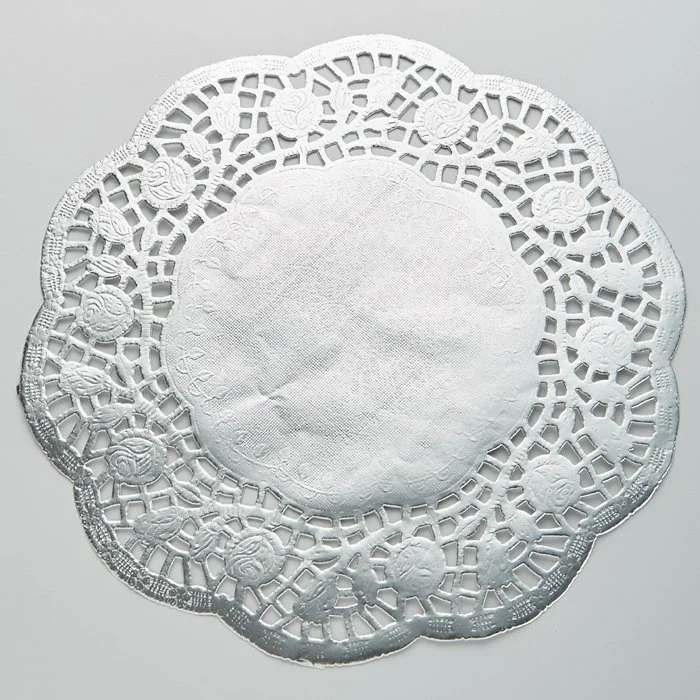 - Резные и тисненые бумажные салфетки станут одним из элементов декора витрины, блюда с пирожными, десертами или тортами, а также послужат отличным элементом украшения для демонстрации Вашего произведения