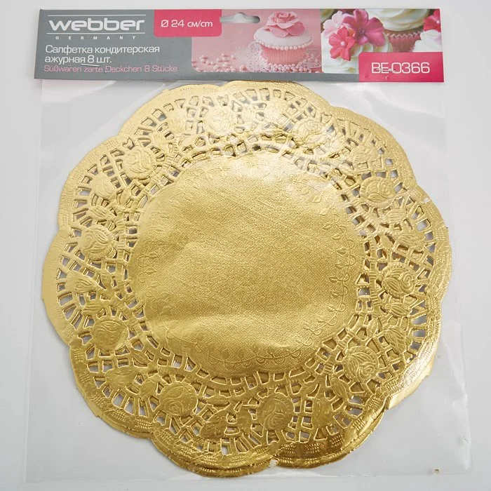 Салфетка кондитерская ажурная Webber 24см 8 штук BE-0366 золотая