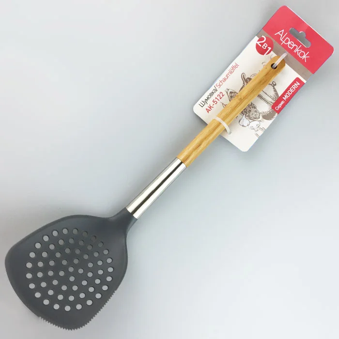 - Шумовка 2 в 1 с зубчатым краем выполняет две функции: