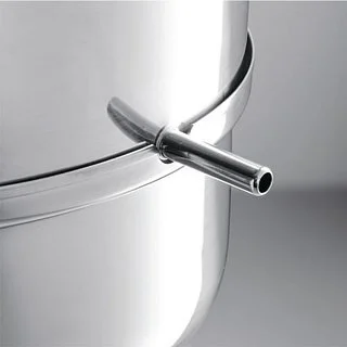 • Принцип действия соковарки: соковыделение происходит под действием пара, поступающего в емкость для фруктов через отверстие в сокосборнике. Сок сливается через отводную трубку, которая перекрывается зажимом