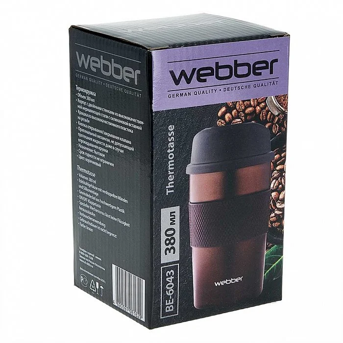 Термокружка 380 мл вакуумная Webber BE-6043 коричневая