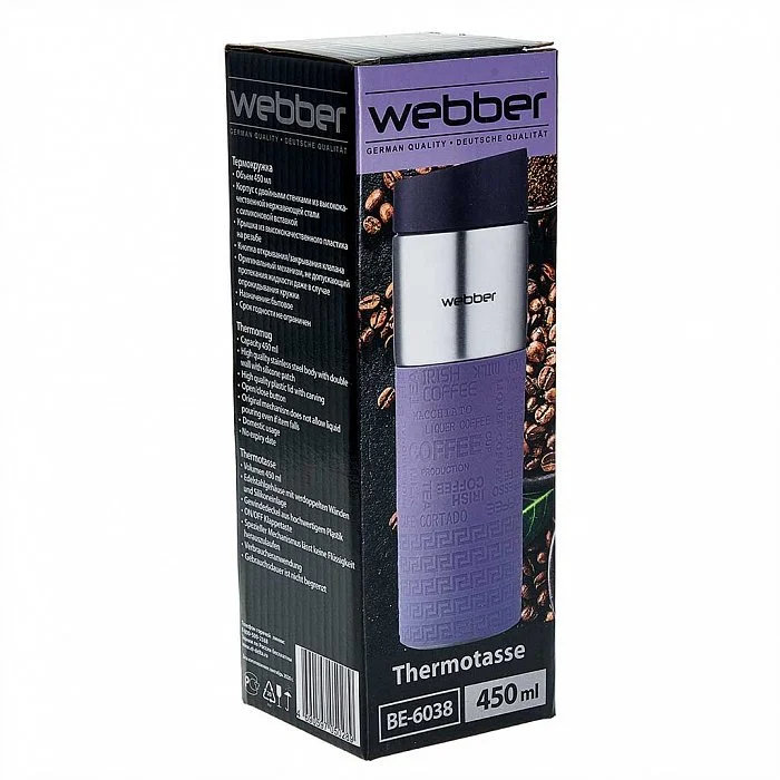 Термокружка 450 мл вакуумная Webber BE-6038 фиолетовая