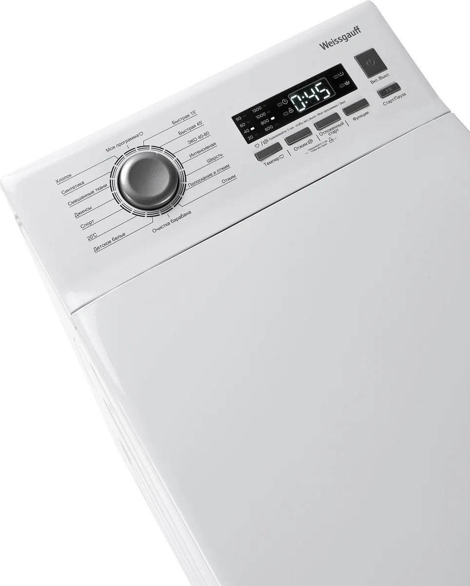Cтиральная машина Weissgauff с вертикальной загрузкой, оснащенная инверторным двигателем, имеет впечатляющие показатели загрузки до 8 кг белья и скорости отжима до 1300 оборотов в минуту, а также большой цифровой дисплей с наглядной индикацией для выбора специальных возможностей и программирования установок - это настоящее сочетание современных технологий и доступной цены!