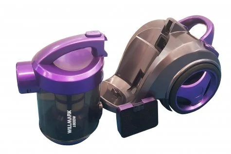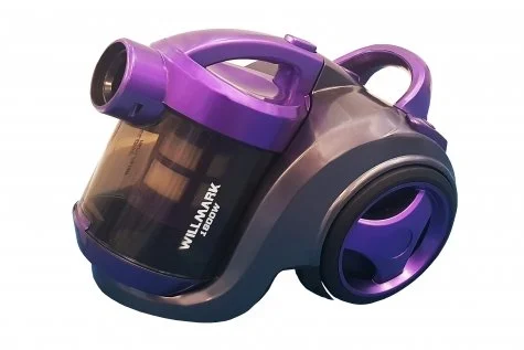 - Пылесос WILLMARK VC-1841CY - это стильный, красивый прибор. Его работа осуществляется по принципу ЦИКЛОН. Он сочетает в себе несколько систем сбора пыли и очистки воздуха. В стандартную комплектацию входит контейнер для сбора пыли. При использовании контейнера работа осуществляется по принципу циклона, т.е. воздух всасываться внутрь большим вихрем, а вся пыль оседать на стенках резервуара. Контейнер сделан из прозрачного пластика, чтобы можно было хорошо видеть, сколько мусора собралось внутри. В резервуаре объёмом 3.0 литра расположен HEPA фильтр. Вокруг него установлен съёмный сетчатый фильтр грубой очистки, который можно мыть при загрязнении. Нажатием на кнопку расположенную на верхней части корпуса контейнер снимается целиком. Дополнительный фильтр установлен с тыльной стороны пылесоса для еще более тонкой очистки воздуха закрытый декоративной пластиковой крышкой, который также можно мыть. На верхней части прибора расположены ручка для переноса, кнопка сматывания шнура, кнопка включения/выключения и регулятор увеличения. Мощность изделия 1800 Ватт, мощность всасывания 380 Ватт. На нижней части расположен ролик поворота и два колёса для перемещения одетые в прорезиненные анти скользящие шины. В комплект входят специальные насадки для уборки труднодоступных мест, шланг и телескопическая раздвижная трубка с регулятором потока воздуха.