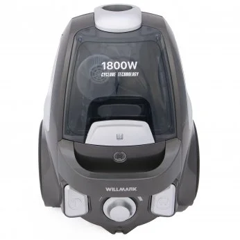 Пылесос WILLMARK VC-1865CY - это современный, стильный, красивый прибор. Выпускается в нескольких цветовых исполнениях. Его работа осуществляется по принципу ЦИКЛОН. Он сочетает в себе несколько систем сбора пыли и очистки воздуха. В стандартную комплектацию входит контейнер для сбора пыли. При использовании контейнера работа осуществляется по принципу циклона, т.е. воздух всасываться внутрь большим вихрем, а вся пыль оседать на стенках резервуара. Контейнер сделан из прозрачного пластика, чтобы можно было хорошо видеть, сколько мусора собралось внутри. Резервуар объёмом 2.0 литра сделан с несколькими отделами. Один из них служит для крупного мусора, а второй — для сбора более мелкой пыли. Нажатием на кнопку расположенную на верхней части корпуса контейнер снимается целиком. В пылесосе дополнительно установлен фильтр грубой очистки из специального синтетического пористого материала чёрного цвета, который можно мыть. А также HEPA фильтр тонкой очистки белого цвета, который окончательно очищает воздух на выпуске из пылесоса. Дополнительный HEPA фильтр установлен с тыльной стороны пылесоса для еще более тонкой очистки воздуха закрытый декоративной пластиковой крышкой. На верхней части прибора расположены стильная ручка для переноса, кнопка сматывания шнура, кнопка включения/выключения, регулятор увеличения мощности и индикатор заполнения резервуара. Мощность изделия 1800 Ватт, мощность всасывания 330 Ватт. На нижней части расположен ролик поворота и два колёса для перемещения одетые в прорезиненные анти скользящие шины. В комплект входят специальные насадки для уборки труднодоступных мест, шланг и телескопическая раздвижная трубка с регулятором потока воздуха.
