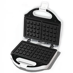 Корпус устройства сделан из прочного термостойкого пластика белого цвета. На верхней части расположен индикатор работы с двумя цветами. Один из них горит, если прибор включен в сеть, а другой включается, когда он разогрелся до нужной температуры и готов к работе. Так же есть удобная ручка для переноски, на которой расположен простой замок для закрытия прибора. Вес вафельницы всего 0,9 кг, а мощность прибора составляет 750Вт. Функция защиты от перегрева не даст вашему помощнику выйти из строя.