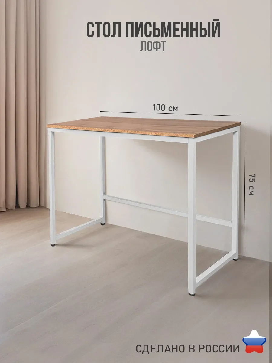Обычный прямоугольный стол в стиле лофт станет изящным украшением для дома, привнесет нотки изысканности. Его прочный белый глянцевый каркас выполнен из металлического профиля 25х25 мм. Благодаря своей надежности, изделие выдержит высокую нагрузку до 100 кг.