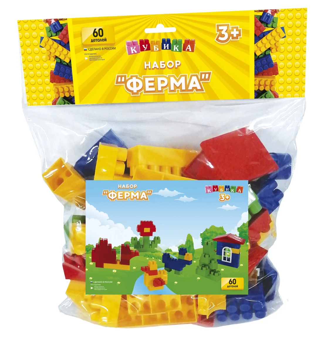 Игрушка-конструктор ФЕРМА детский набор 60 деталей Юг-Пласт КДФ-3018