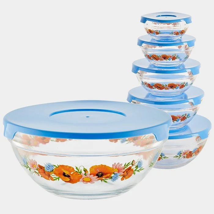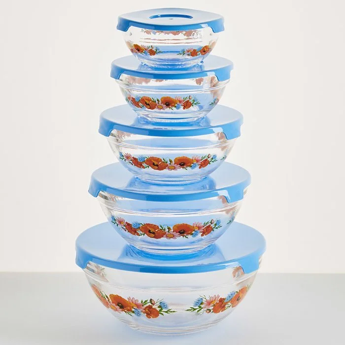 • Набор из 5 круглых мисок из упрочненного стекла с декоративным рисунком